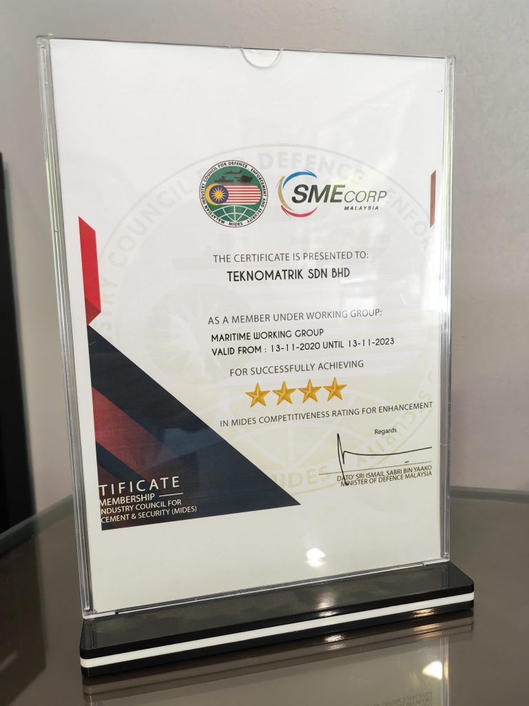 Teknomatrik is a well-known member of the Malaysia Industry Council for Defence, Enforcement and Security (MIDES) and actively participates in the Maritime Working Group and the Cyber Electromagnetic Working Group. In 2018, Teknomatrik was awarded a prestigious 4-star MCORE rating by the Ministry of Defence’s (MINDEF) Defence Industry Division. This notable achievement has allowed Teknomatrik to expand its technical collaboration in submarine simulation development and Integrated Platform Management Systems (IPMS) maintenance. Teknomatrik has partnered with esteemed entities like the DCNS Naval Group and the Royal Malaysian Navy.