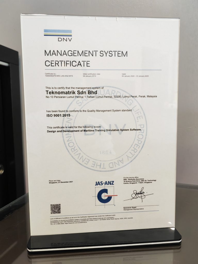 In addition to being registered with MOF, Teknomatrik has also obtained ISO9001 certification in software development.